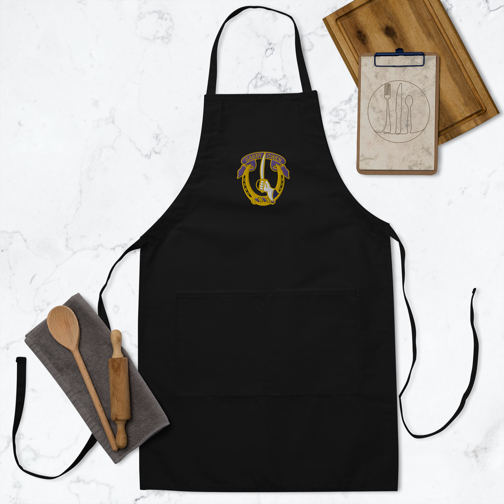 Thanks to this embroidered apron you don't have to worry about keeping your clothes clean when cooking! The neck loop and long ties, two front pockets, and intricate embroidery in front all come together in an eye-catching and comfy accessory that'll make you long for more time in the kitchen.