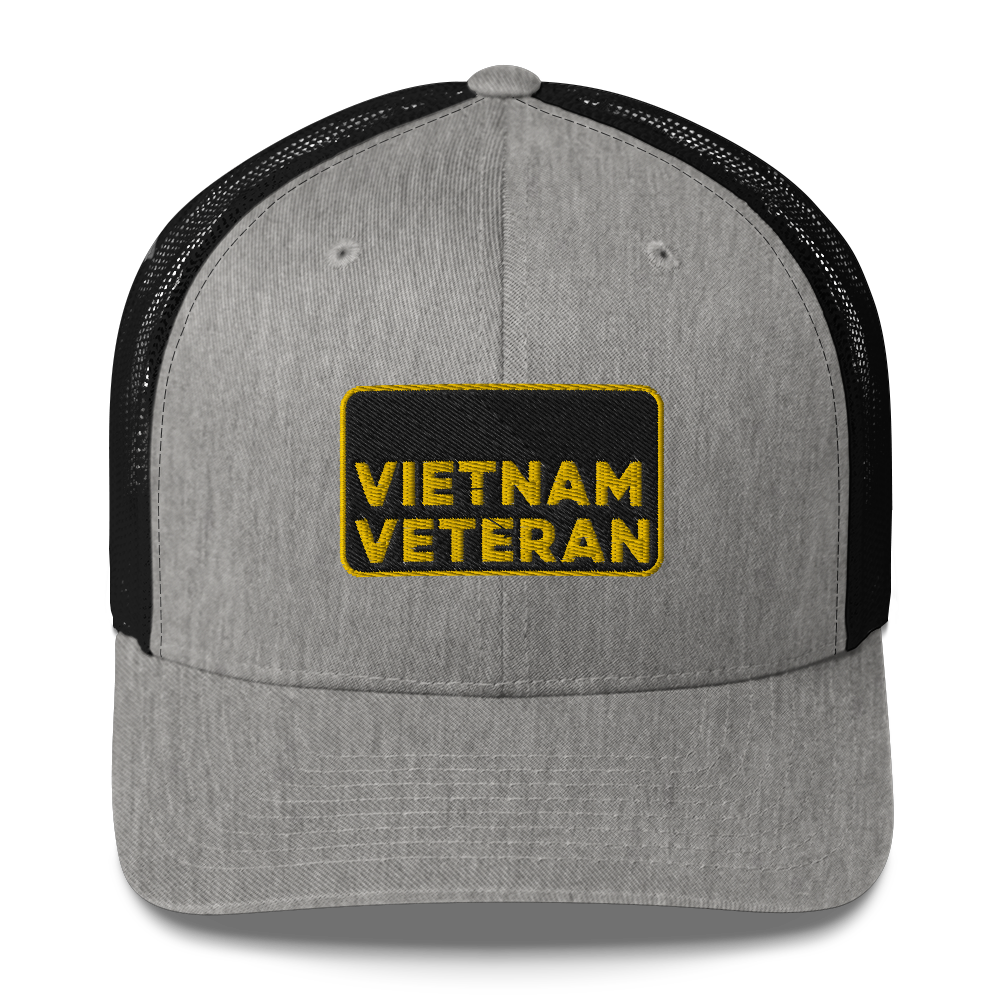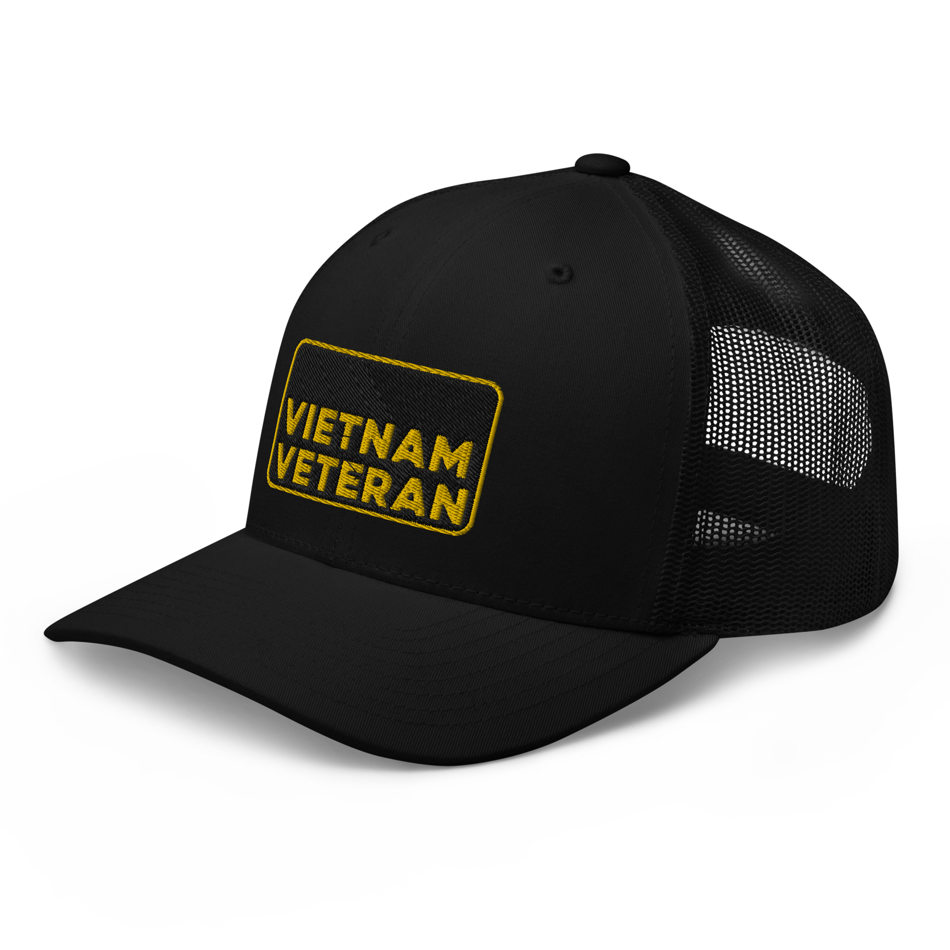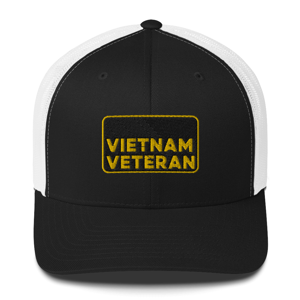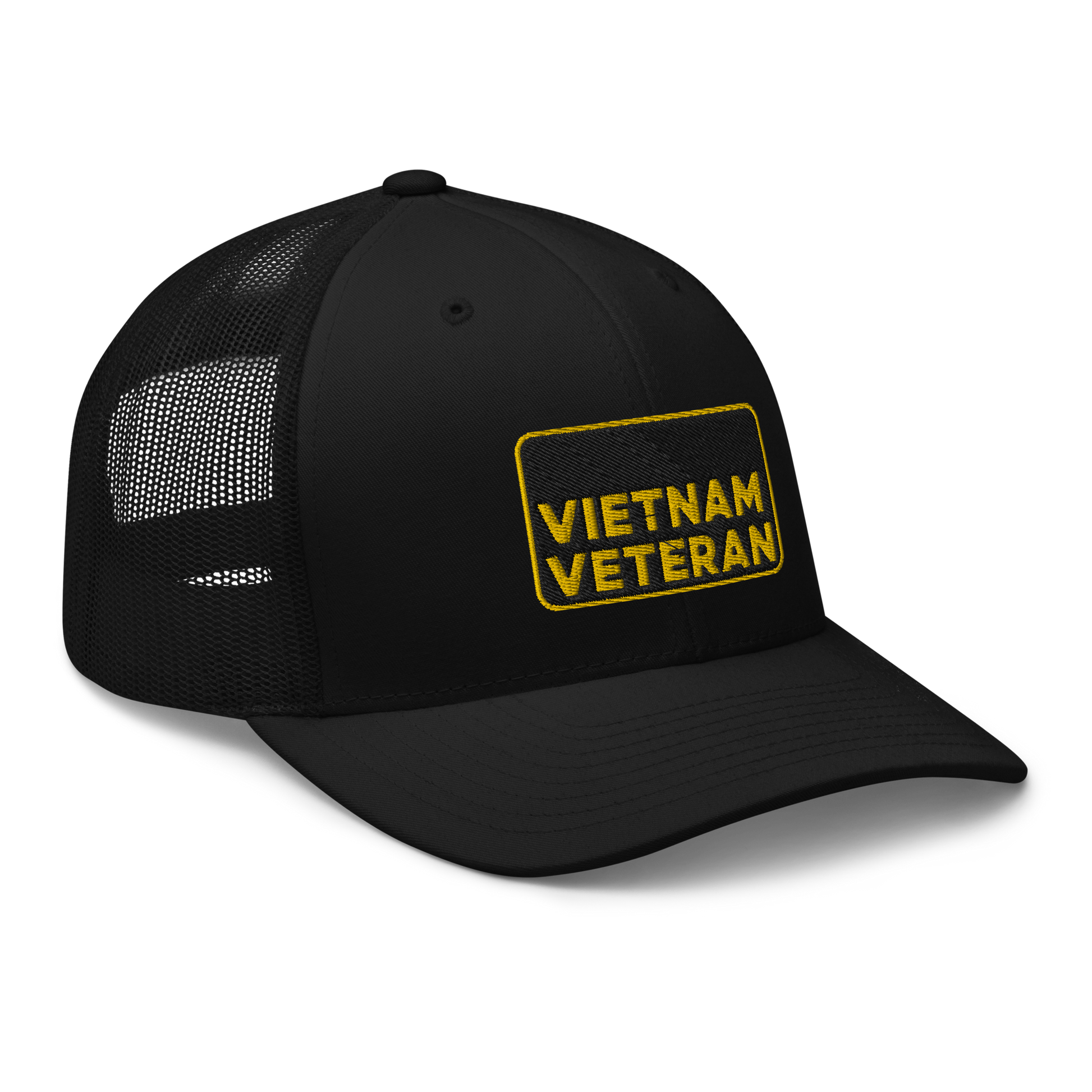 Six-panel trucker cap with a mesh back. Snapback for adjustable sizing.
